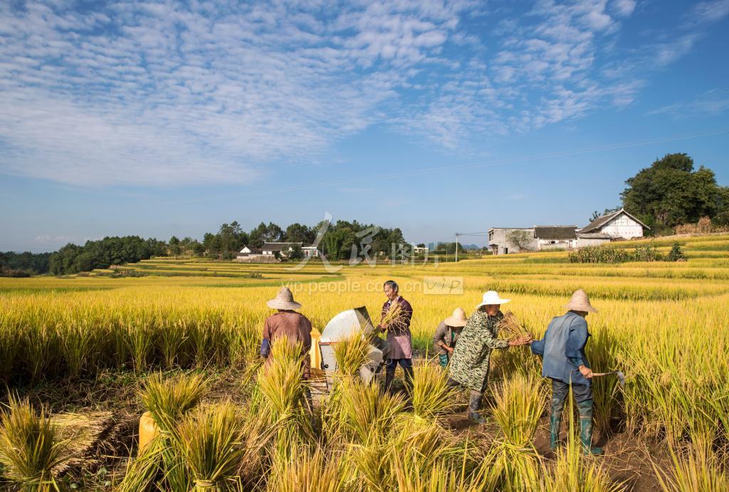 2021年9月8日,贵州省黔西市锦星镇洪湖村,村民收割成熟的稻谷。