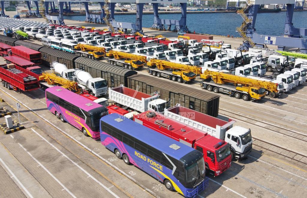 2021年9月13日,大批出口车辆在山东港口烟台港准备装船发运。