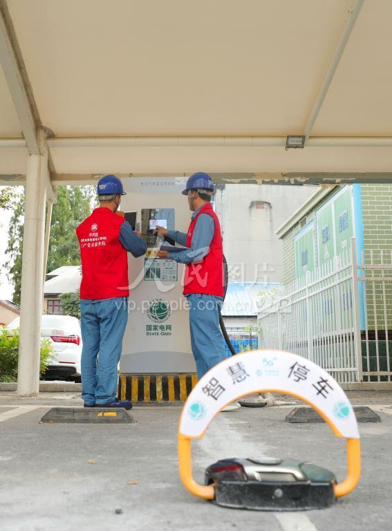 2021年9月13日,安徽省滁州供电公司通信技术人员正在对智慧停车充电微应用进行投运测试。