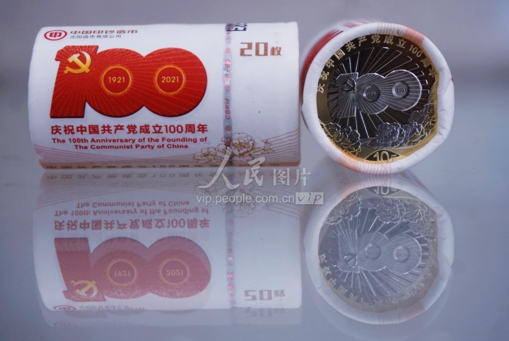2021年9月15日,在杭州拍摄到的中国共产党成立100周年双色铜合金纪念币。