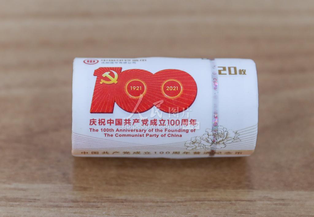 2021年9月15日,上海松江,中国共产党成立100周年普通纪念币。