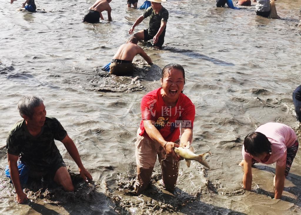 2021年9月17日,湖南省永州市道县梅花镇贵头村,农民在参加“浑水摸鱼”活动。