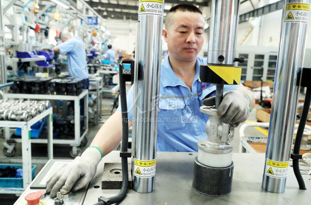 2021年10月9日,苏州纽威阀门股份有限公司员工在车间加班生产各种阀门。
