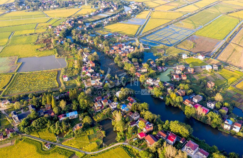 2021年10月12日,安徽省合肥市庐江县泥河镇天井村,万亩虾田稻渐次成熟,大地一片金黄。