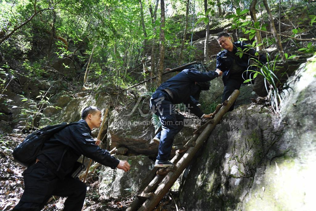 2021年10月12日,江西省宜春市靖安县九岭山国家级自然保护区璪都保护管理站的巡护员在巡护途中艰难前行。