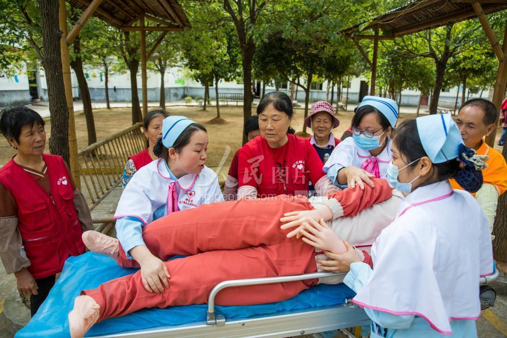 2021年10月14日,江西省九江市都昌县中医院南丁格尔志愿者为敬老院护理人员进行护理培训。