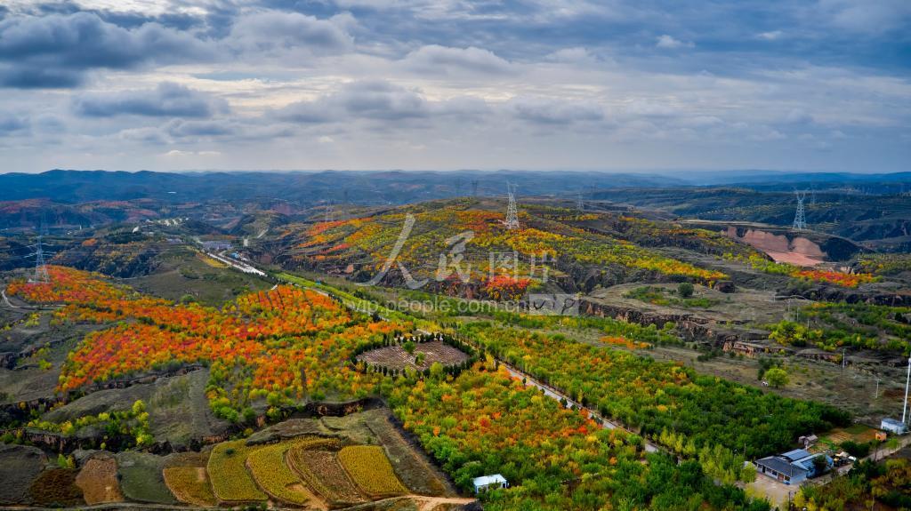 10月14日,陕西省榆林市榆阳区古塔镇杏树岭油画般的秋日美景。
