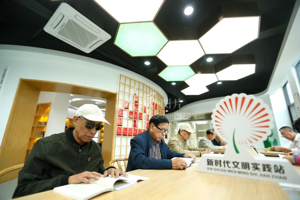 2021年10月14日,居民在山东省青岛市即墨区潮海街道古城社区新时代文明实践站里阅览图书。