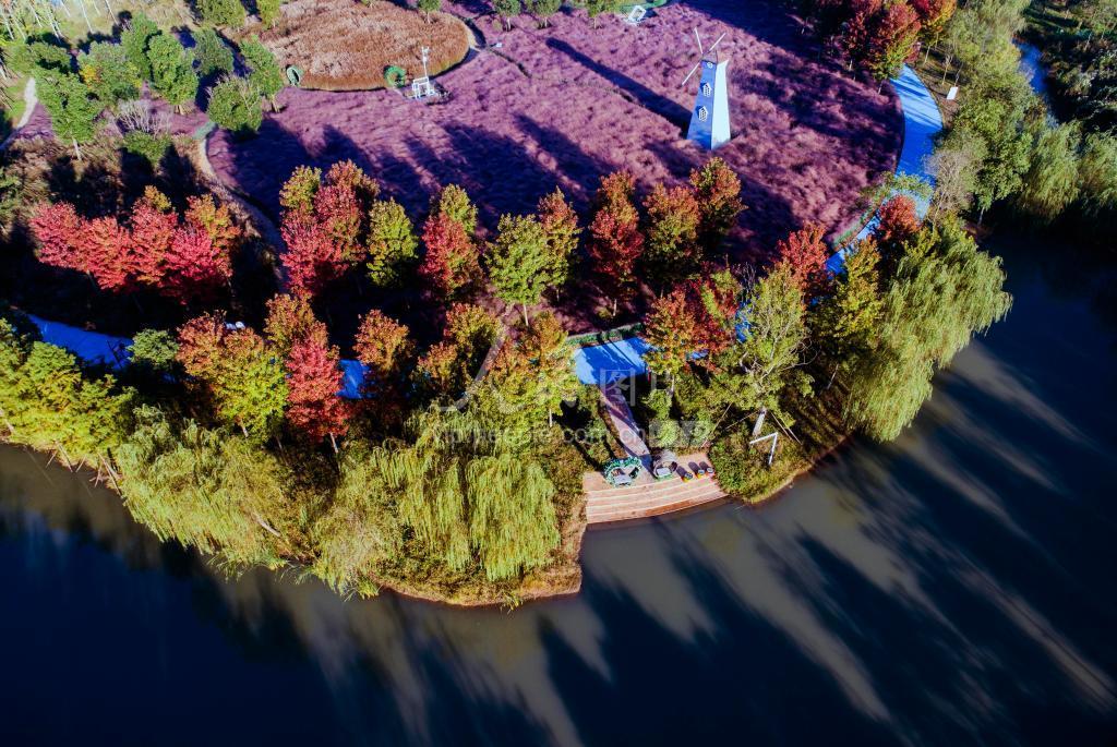 霜降临近,随着气温的下降,江苏省淮安市白马湖森林公园秋色渐浓,呈现出迷人的色彩。
