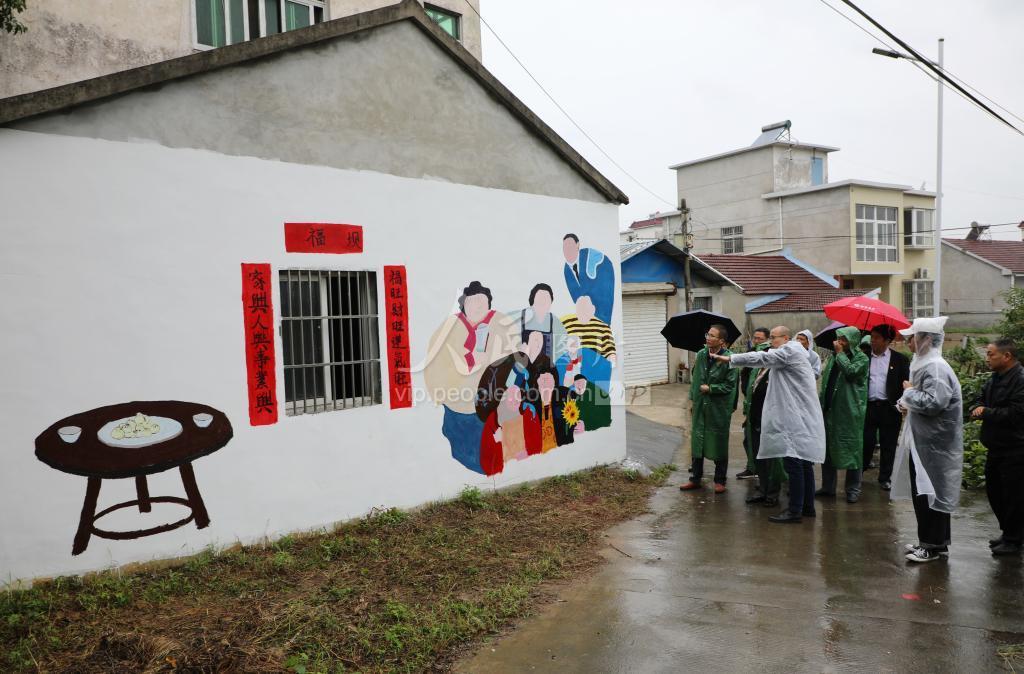 2021年10月20日,安徽芜湖三山经济开发区三山街道长坝村福宕村民组,人们在观看墙体彩绘。