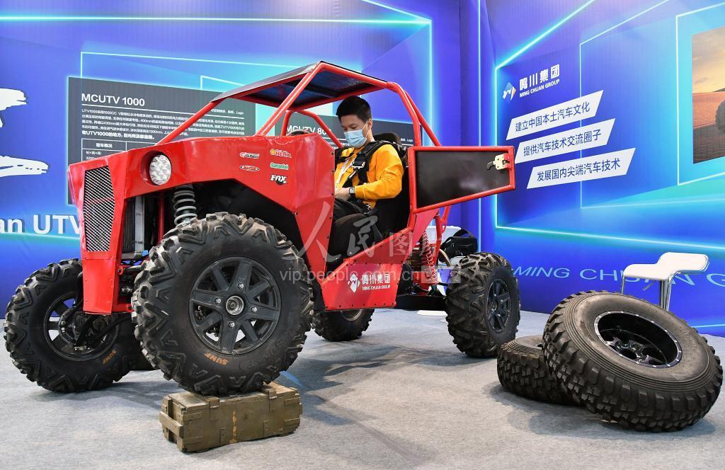 10月22日,观众在2021世界工业设计大会国内外优秀工业设计成果展上体验多功能全地形车。