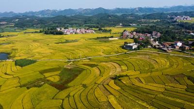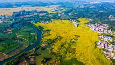 金秋时节,广西来宾市兴宾区城厢镇平洞村委万亩水稻即将开镰收割。一块块阡陌纵横的金黄稻田,错落有致地镶嵌在乡村田园间,绘就出一幅美丽的丰收图景。