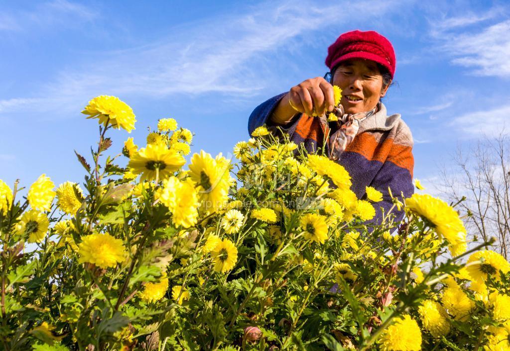 2021年11月22日,安徽省合肥市庐江县汤池镇中份村菊花种植基地,村民们正抓紧晴好天气采摘菊花,分拣、烘干上市。 近年来,庐江县汤池镇中份村以“党支部+基地+村民”的模式,大力发展生态金丝皇菊、贡菊、桃菊等经济作物的种植,从整地、育苗、移栽、插竹子、绑捆绳子,到除草、采摘和分拣菊花,全部采取人工,生态种植。种植基地吸纳100多名周边群众就近就业,人均年增收1.5万元以上。
