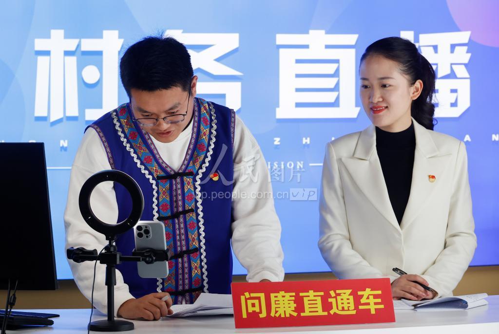 11月25日,景宁畲族自治县纪检监察干部在该县鹤溪街道东弄村直播间与村民进行互动,收集有关情况。