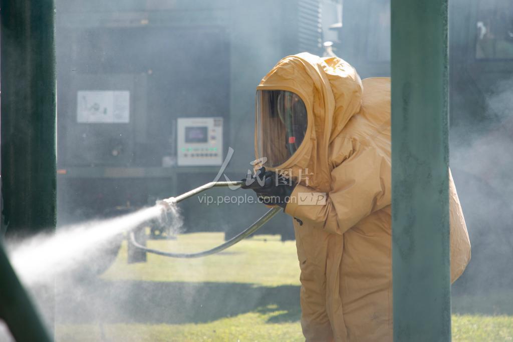 2021年11月25日,武警防化兵正在对染毒区域进行洗消。