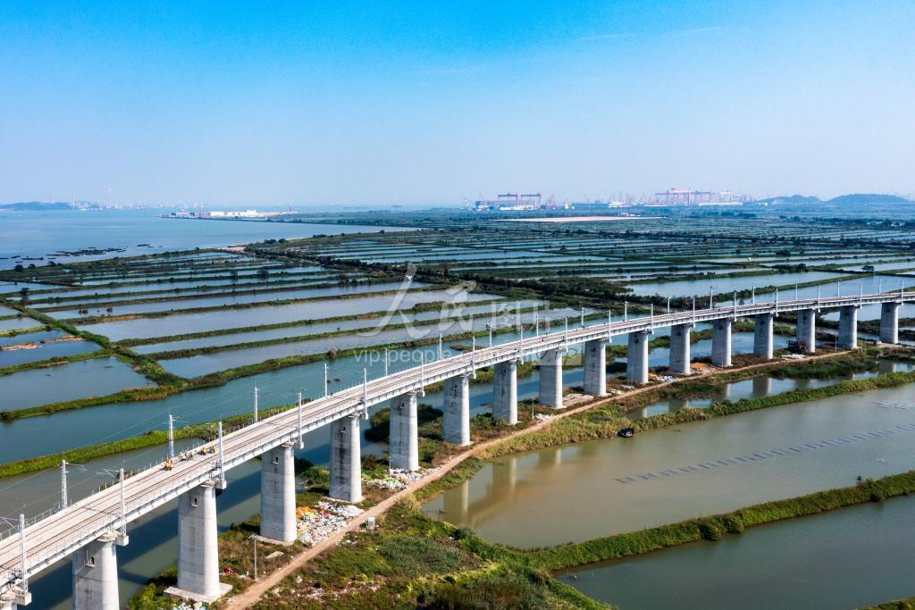 2021年11月25日,在广州市南沙区龙穴岛,即将通车的双线电气化客货共线南沙港铁路在水乡蜿蜒。