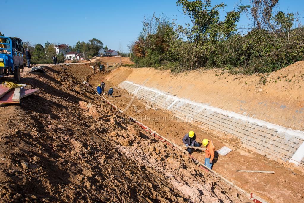 2021年11月25日,安徽省芜湖市湾沚区红杨镇,工人正在汤泊河中型灌区续建配套与节水改造工程工地上施工作业。