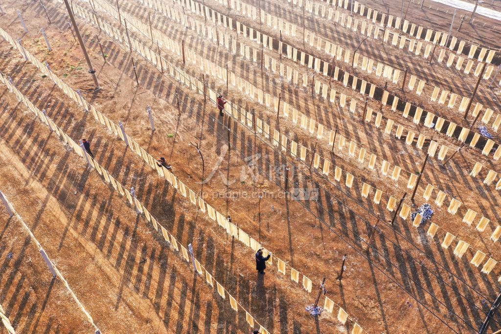 2021年11月26日,江苏省宿迁市沭阳县吴集镇魏牌坊村,当地村民正在晾晒手工粉条。 据悉,每年的农历十月起,当地有着制作手工粉条的传统,依靠手工粉条的制作销售,带动了当地农民的增收致富。