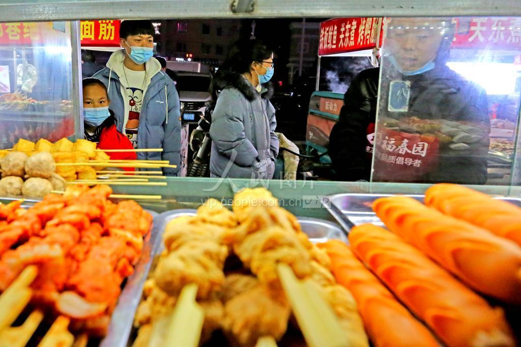 2021年11月25日,市民在新疆哈密市伊州区迎宾大道旁的皇后天街夜市选购美食。