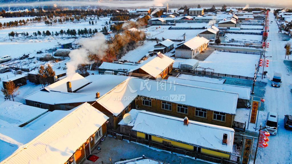 2021年11月30日,黑龙江省漠河市漠河乡北极村,炊烟袅袅迎接游客。