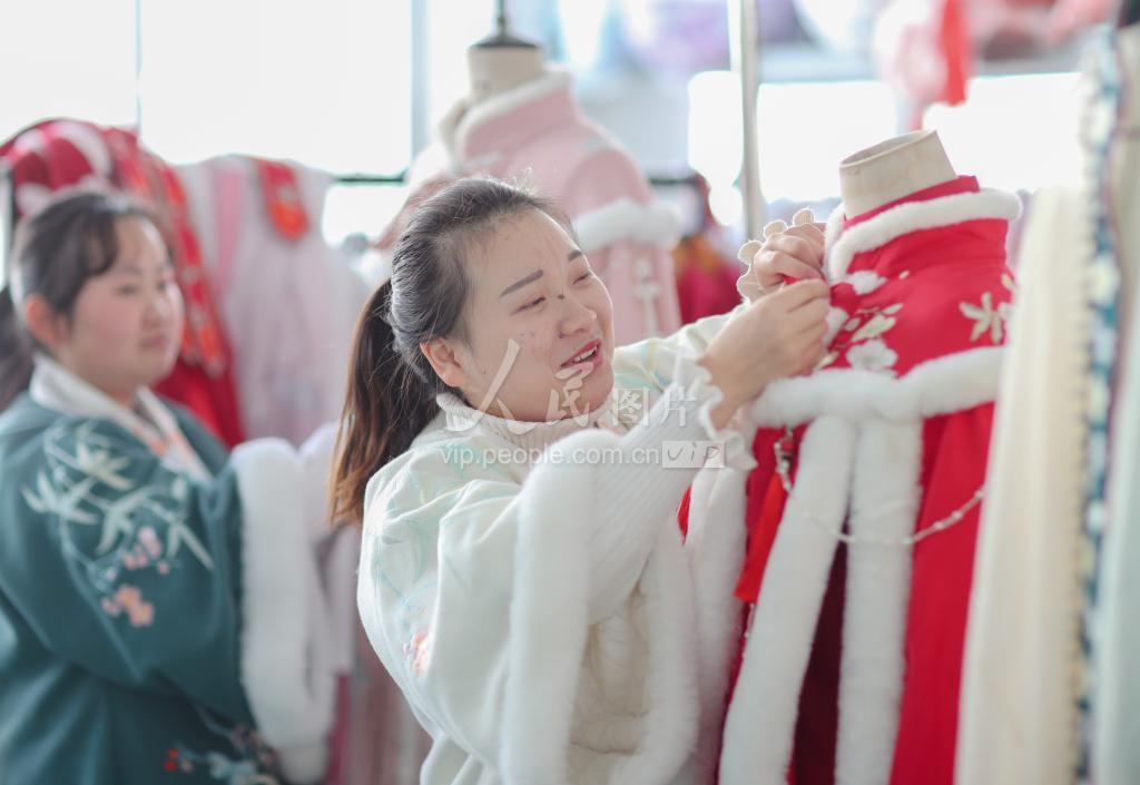 2021年12月9日,工人在贵州省黔东南苗族侗族自治州岑巩县一家服装生产企业生产车间工作。