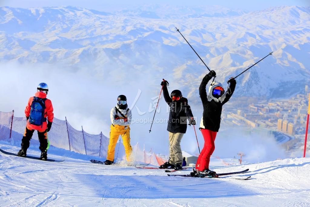2021年12月10日,新疆阿勒泰市将军山滑雪场,游客正在滑雪,体验冰雪运动的魅力。