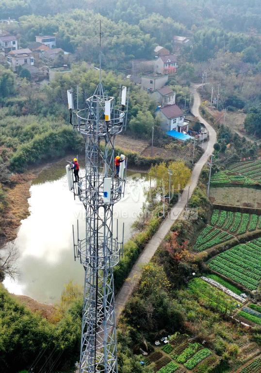 2021年12月13日,安徽移动铜陵分公司网络维护人员在安徽省铜陵市义安区天门镇五峰村基站进行5G基站天线现场调测。