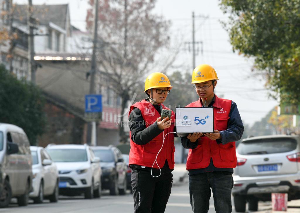 2021年12月13日,安徽移动铜陵分公司网络维护人员在安徽省铜陵市义安区天门镇五峰村基站进行5G基站天线现场调测。