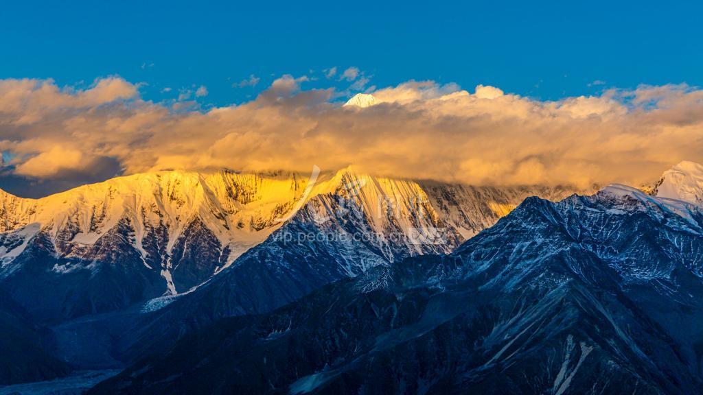 2021年12月27日,四川省甘孜藏族自治州康定县海螺沟,朝阳照射下的贡嘎雪山 ,壮美如画。