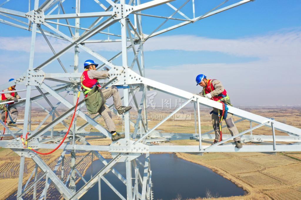 2022年1月3日,在安徽省滁州市全椒县220千伏八波输变电工程建设工地,电力工人在70多米高空进行组塔作业。 元旦小长假期间,安徽送变电工程公司和滁州市供电公司300余名电力建设者们放弃了假期休息与家人团聚的机会,依然坚守在工作岗位上,加快施工进度,以确保滁州电网“迎峰度夏”重点工程——220千伏八波输变电工程今年6月底竣工投产。该输变电工程线路全长25千米,新建铁塔74基,动态投资约7000万。据了解,该工程建成将解决滁州市全椒县电网 220千伏变电容量亏缺严重局面,满足滁州市全椒县经济发展负荷增长需求,提高区域电网的供电可靠性。