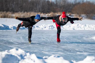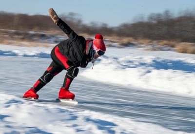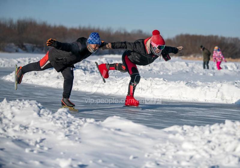 上传时间: 2022-01-03 18:28:17 图片说明: 2022年1月3日,内蒙古呼伦贝尔市牙克石市郊外,市民以滑冰的方式强身健体。