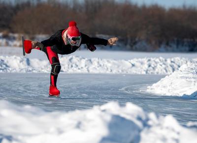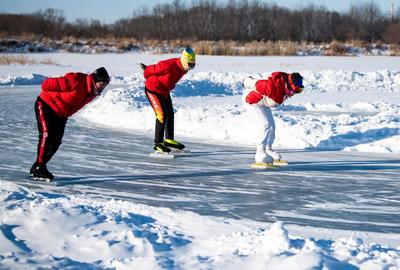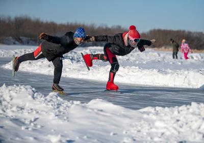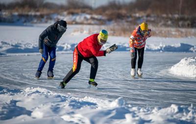 2022年1月3日,内蒙古呼伦贝尔市牙克石市体育爱好者走出家门,以滑冰的方式强身健体。