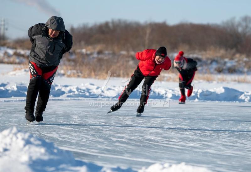 2022年1月3日,内蒙古呼伦贝尔市牙克石市体育爱好者走出家门,以滑冰的方式强身健体。