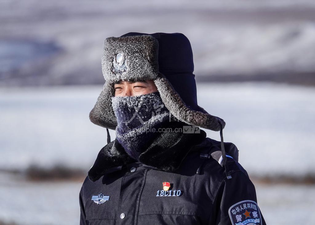 1月6日,民警在巡逻期间,因天气寒冷,面罩布满冰霜。