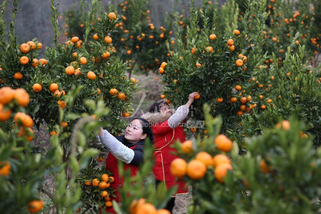 2022年1月14日,重庆市彭水苗族土家族自治县诸佛乡双合场村占地100余亩的柑橘种植园进入采摘期,果农正在园内采摘柑橘。近年来,诸佛乡通过引进农业企业、培育种植养殖大户等方式,抓好产业发展,促进乡村产业振兴。
