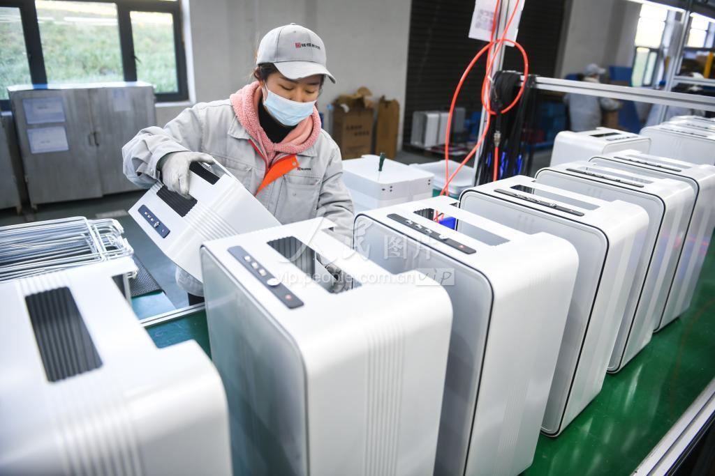 2022年1月14日,在贵州水城经济开发区,贵州铭恒新材料有限公司工人在拉杆箱生产线上忙碌。