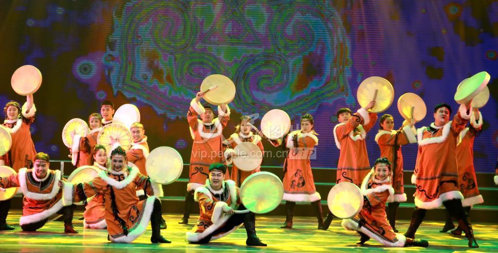 1月14日,黑河市爱辉区文化馆瑷珲民族歌舞团在黑龙江省歌舞剧院表演鄂伦春族舞蹈《麦勒仨扽》。