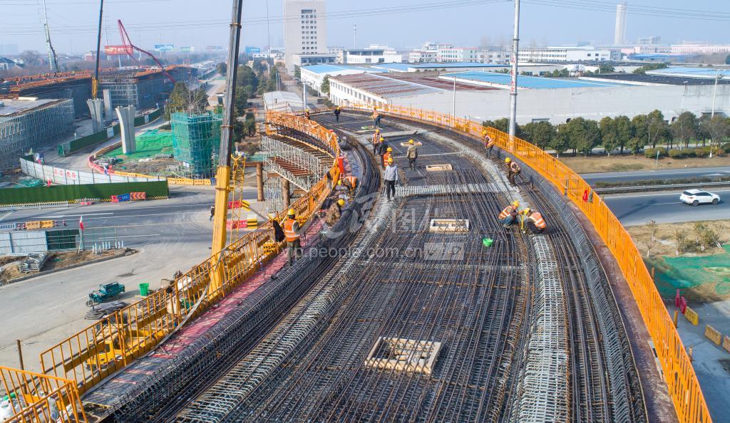 2022年1月15日,江苏省海安市城建集团建设人员在328国道海安段快速化工程工地上抓紧施工。 328国道海安段快速化改造工程,是海安市打通城区内联外通的又一重要工程,对完善综合交通体系、改善群众出行条件、提高区域整体竞争力,具有十分重要而深远的意义。