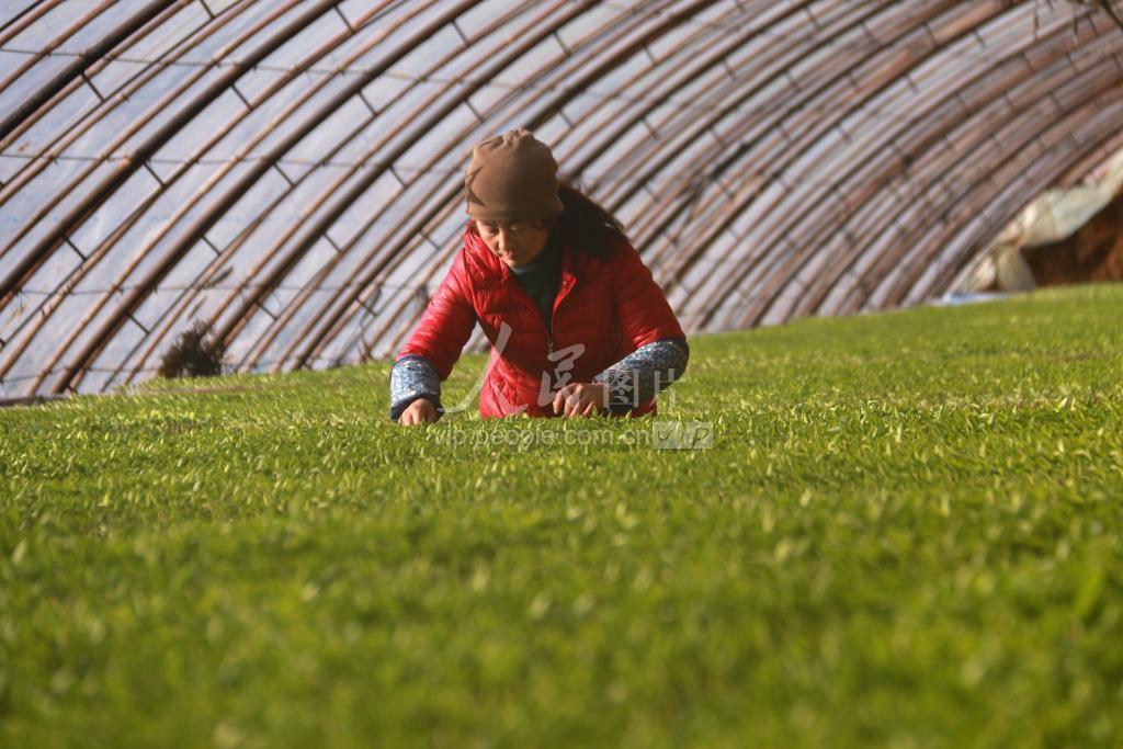 隆冬时节,甘肃省敦煌市的农民们在日光温室中采取穴盘育苗方式,积极培育生产蔬菜秧苗,做好蔬菜秧苗管理工作。