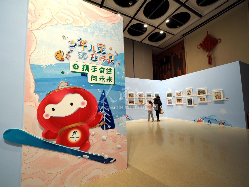 2022年1月15日,观众在中国妇女儿童博物馆参观“少年儿童迎冬奥——第二届全国儿童绘画展”。该展览于1月14日在中国妇女儿童博物馆开展,分为“我的童年冬奥梦”“灵巧小手画冬奥”“冰雪迎春喜洋洋”“携手奋进向未来”四个篇章进行展示。
