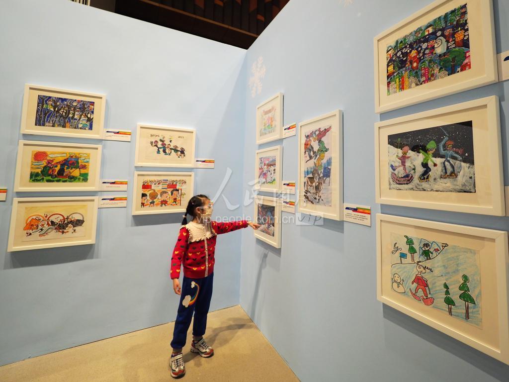 2022年1月15日,观众在中国妇女儿童博物馆参观“少年儿童迎冬奥——第二届全国儿童绘画展”。