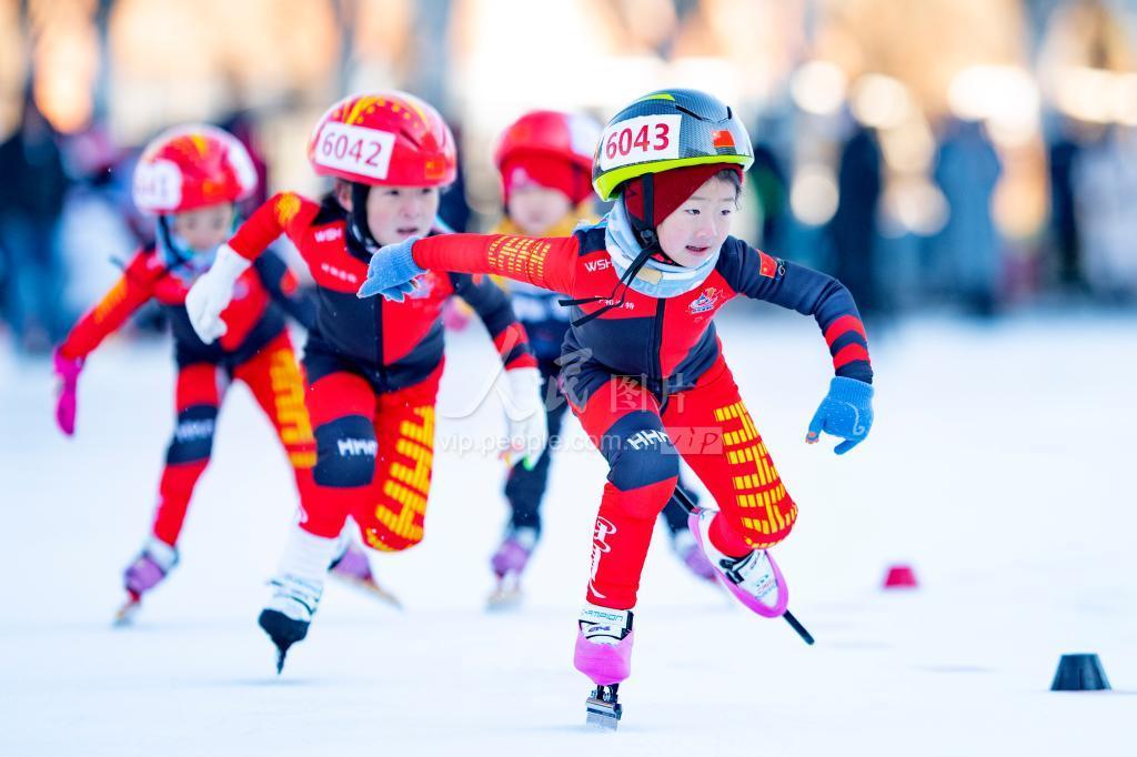 2022年1月15日,小朋友在速度滑冰比赛中。