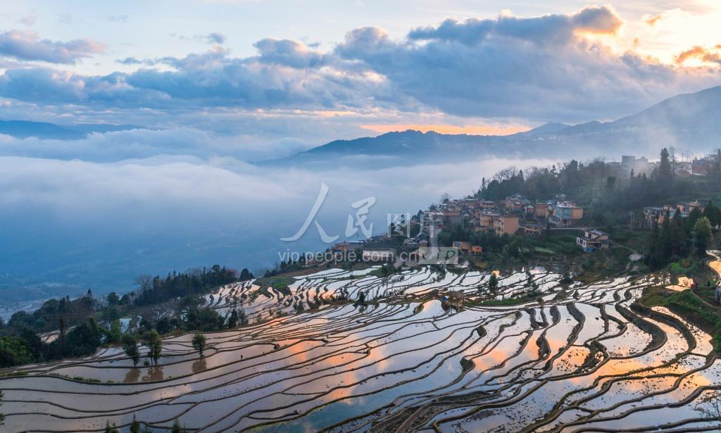 2022年1月19日,云南省红河哈尼族彝族自治州红河县宝华乡龙甲村,撒玛坝梯田晨雾氤氲,美如画卷。