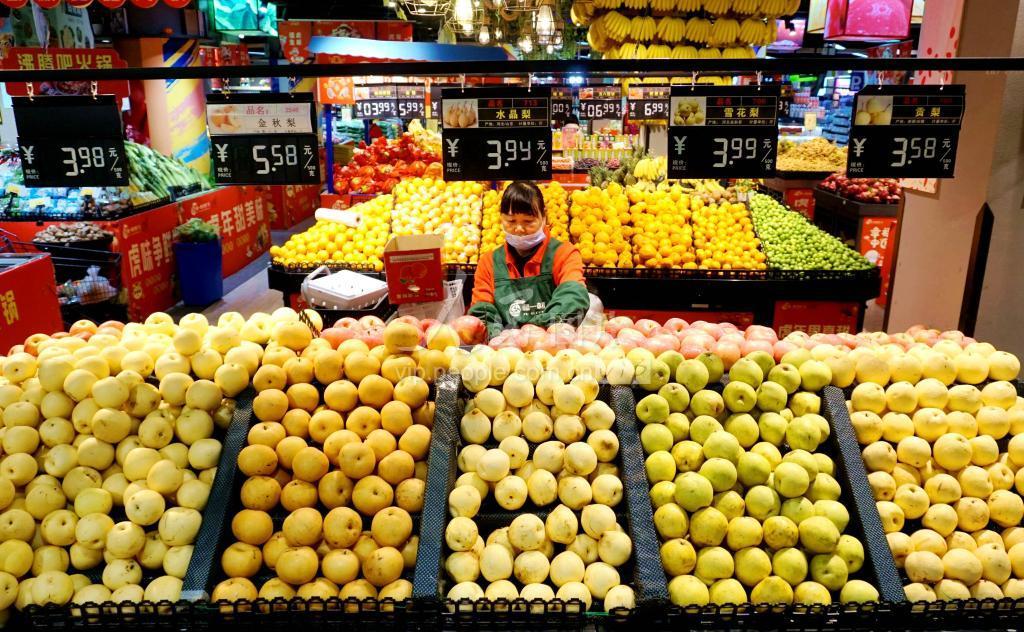 2022年1月29日,工作人员在贵州省黔东南苗族侗族自治州从江县福一村超市北上店分选果蔬。