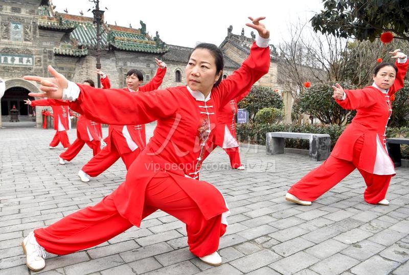 2022年2月9日,在安徽省亳州市谯城区花戏楼景区,市民在表演国家级非物质文化遗产华佗五禽戏。 元宵节临近,安徽省亳州市市民在花戏楼景区为游客表演华佗五禽戏,展示非物质文化遗产的独特魅力。华佗五禽戏是国家级非物质文化遗产,近年来,亳州市开展五禽戏进机关、进企业、进学校、进社区、进农村、进景区等活动,使华佗五禽戏这项国家级非物质文化遗产得到广泛的传承与发展。