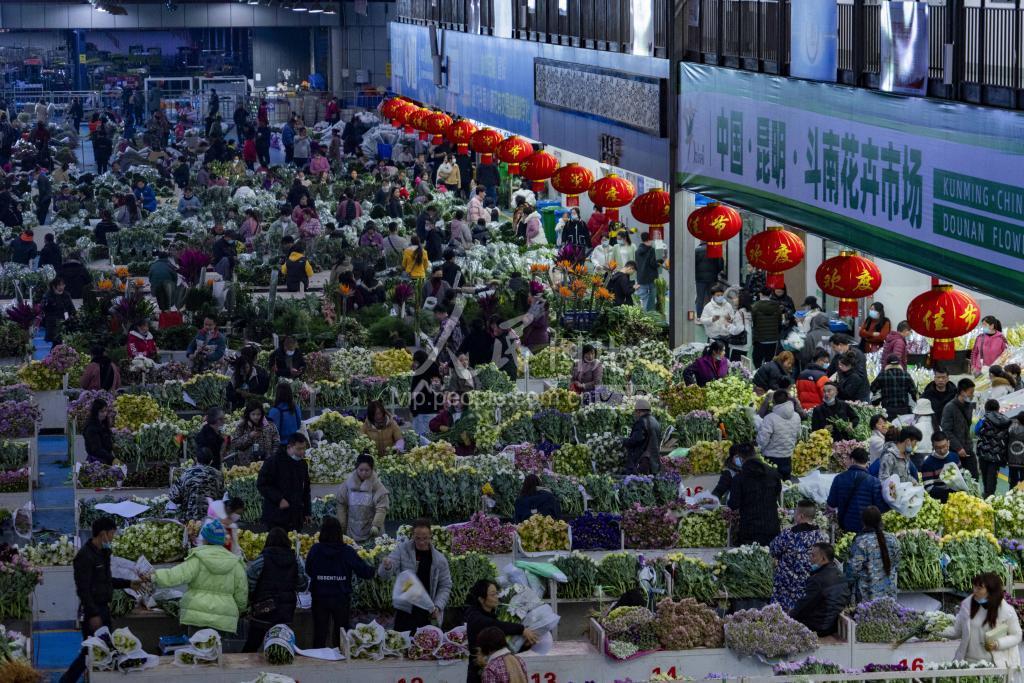 上传时间: 2022-02-10 23:44:20 图片说明: 2022年2月9日,昆明斗南花卉市场人头攒动。