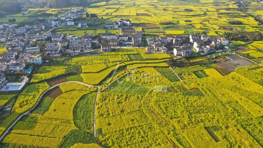 立春过后,贵州省黔西南布依族苗族自治州兴义市万峰林春意盎然,千亩油菜花竞相绽放,秀峰、村舍与田间盛开的油菜花相映成趣,风景如画。