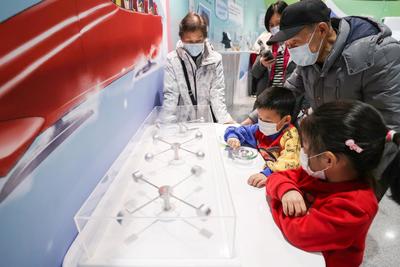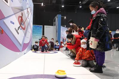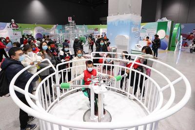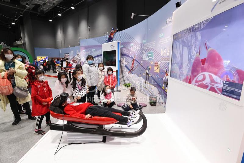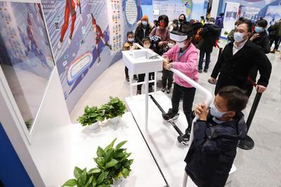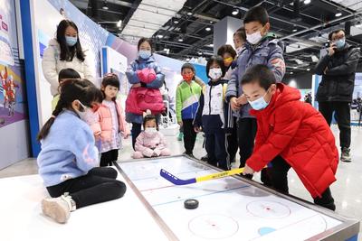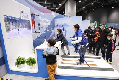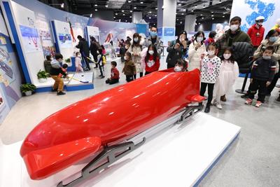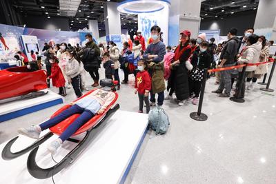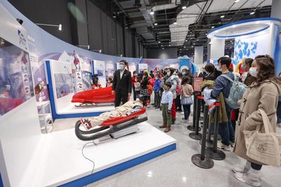 2022年2月17日,众多观众排队在中国科技馆“冬梦飞扬——中国科技馆科技冬奥主题展览”参观体验。展览设有“冬奥之约”“冰雪之魅”“运动之秘”“科技之力”“未来之城”五个主题展区及序厅、冬残奥会展示区、教育活动区三个展示交流区,并结合5G、4K、VR等现代技术手段,为观众营造一个参与、互动、体验的科技冬奥冰雪世界。