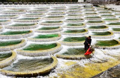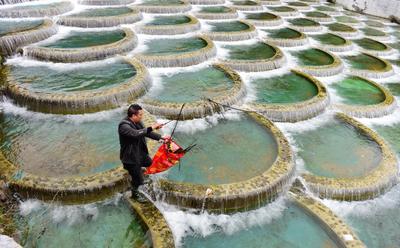2022年2月18日,湖北省恩施州咸丰县曲江镇湾田村河道保洁员覃剑在曲江河湾田段捡拾河道中的枯枝和垃圾。咸丰县坚持绿色发展理念,将全县60条河流和622处小微水体全部纳入河长制推行范围,打通治水护水“最后一公里”,打造“水清、河畅、岸绿、景美”的良好水生态。