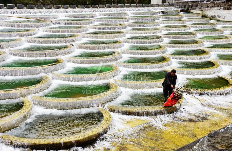 2022年2月18日,湖北省恩施州咸丰县曲江镇湾田村河道保洁员覃剑在曲江河湾田段捡拾河道中的枯枝和垃圾。咸丰县坚持绿色发展理念,将全县60条河流和622处小微水体全部纳入河长制推行范围,打通治水护水“最后一公里”,打造“水清、河畅、岸绿、景美”的良好水生态。